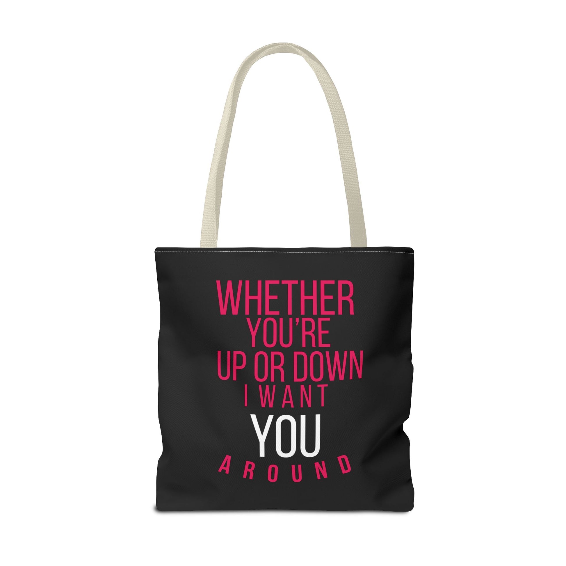 Carry your truth with confidence. Our “I Want You Around" tote bag is a bold, vibrant reminder that emotions and growth can coexist. Designed to speak to your journey, this everyday essential blends style with purpose—perfect for errands, books, self-care supplies, or simply making a statement.