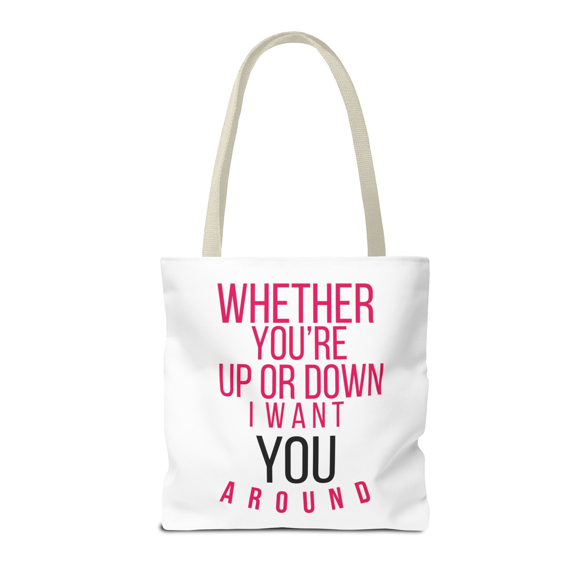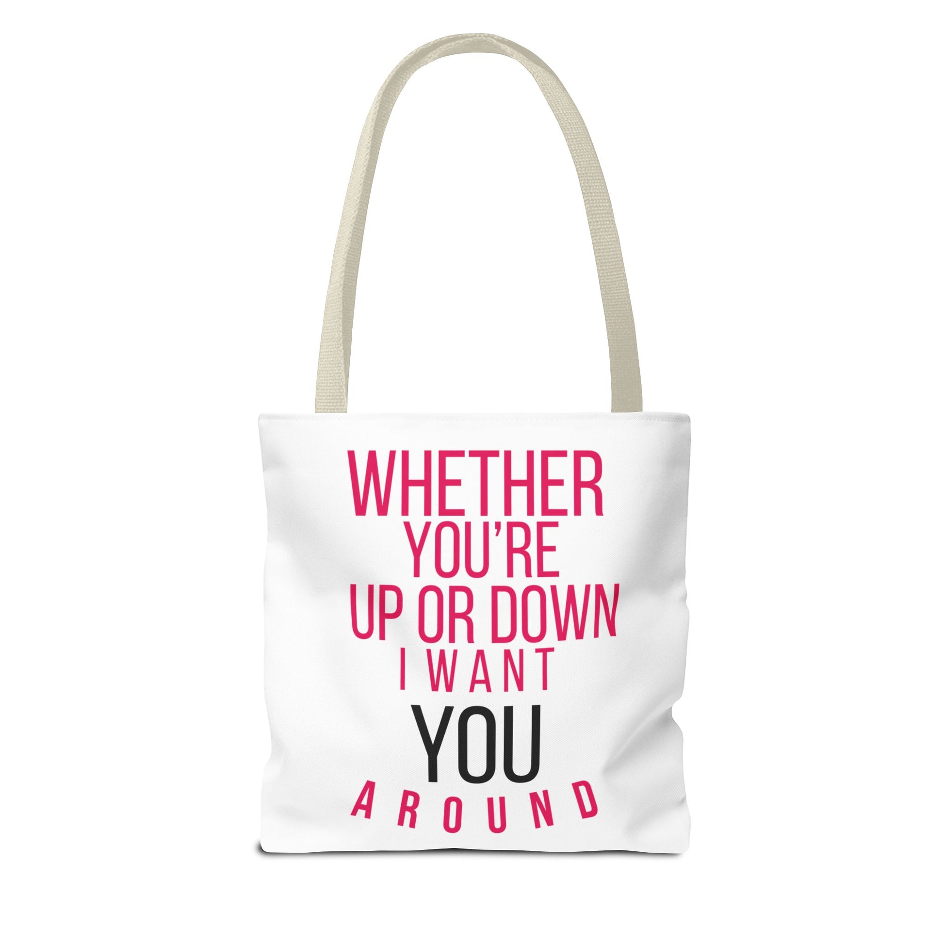 Carry your truth with confidence. Our “I Want You Around" tote bag is a bold, vibrant reminder that emotions and growth can coexist. Designed to speak to your journey, this everyday essential blends style with purpose—perfect for errands, books, self-care supplies, or simply making a statement.